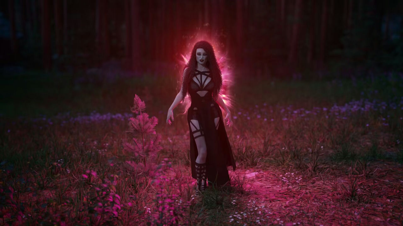 益智游戏图片-美丽女孩在神奇氛围中的独特2D图片。